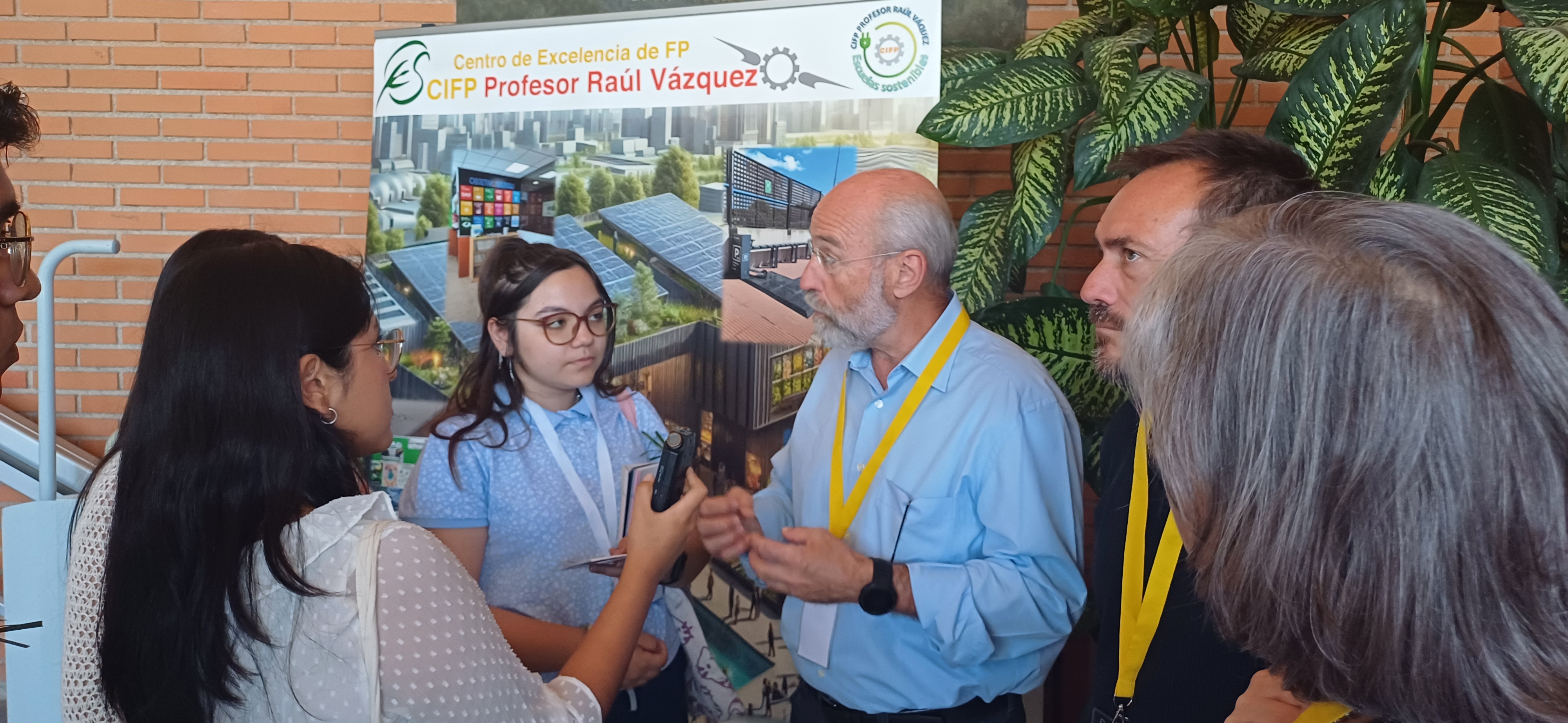 El CEIP Carmen Hernández Guarch de Tres Cantos ha participado el pasado 31 de mayo realizando una serie de entrevistas a los distintos centros educativos que han presentado sus proyectos relacionados con Educación hacia la sostenibilidad. Por su parte, el 1 de junio alumnos del IES Cervantes de Madrid estuvieron entrevistando a distintas personalidades que actuaron como ponentes en este congreso. Dicho congreso se ha celebrado en las instalaciones del Complejo educativo Ciudad Escolar.